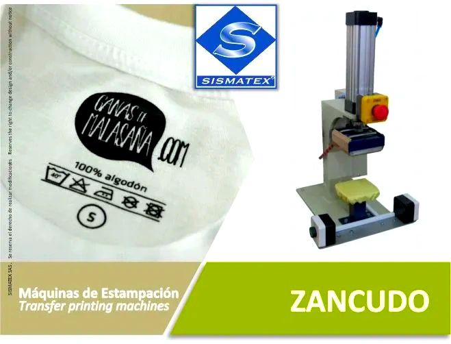 Esta máquina de accionamiento neumático ha sido diseñada especialmente para la estampación de marquillas y transfer en pequeños diseños. La regulación de temperatura es por medio de un pirómetro análogo. La presión y el tiempo son así mismo regulables. Requiere de compresor para su funcionamiento.